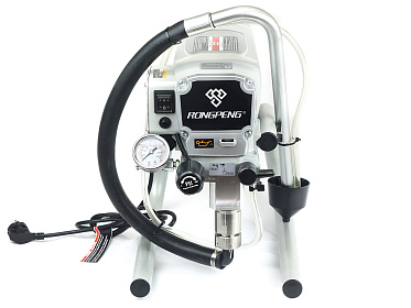Окрасочный аппарат Zitrek Rongpeng R450 используется для быстрой массовой окраски фасадов и внутренних стен, потолков; нанесения ЛКМ на дерево; грунта и краски на металлические, бетонные конструкции. Засасывает краску из емкости и подает в краскопульт для распыления.